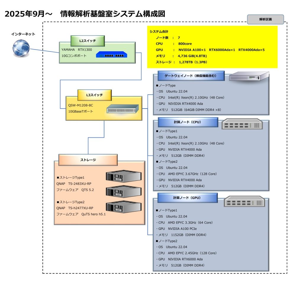 | 計算ノード | 部門 | CPU | メモリサイズ | 備考 |